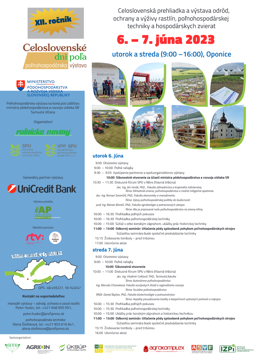 srdečne vás pozývame do nášho stánku Agrotec Slovensko v rámci 12. ročníka výstavy Celoslovenské dni poľa, ktoré sa uskutočnia v Oponiciach, okres Topoľčany, v dňoch 6. a 7. júna 2023, kde vám budú k dispozícii naši odborníci na stroje a najnovšie technológie v poľnohospodárstve, kombajn New Holland CR9.90 s 11 m univerzálnou lištou MacDon a skvelé občerstvenie!